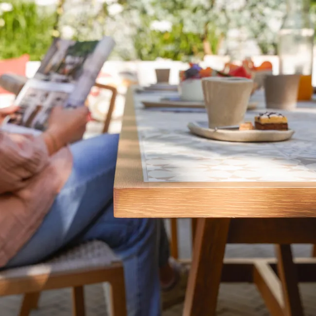 Mesa fixa imitação madeira com tampo cerâmico 187×96 cm Naterial Gaia